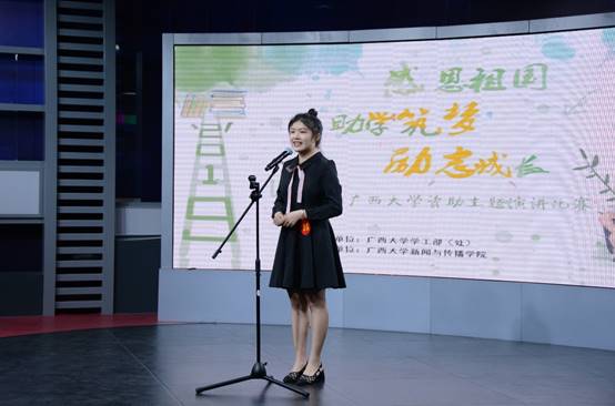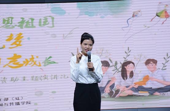 计算机与电子信息学院的罗杨洋同学则在演讲中穿插了歌唱《我和我的祖国》,表达了一个受资助员工对国家的感恩之情。