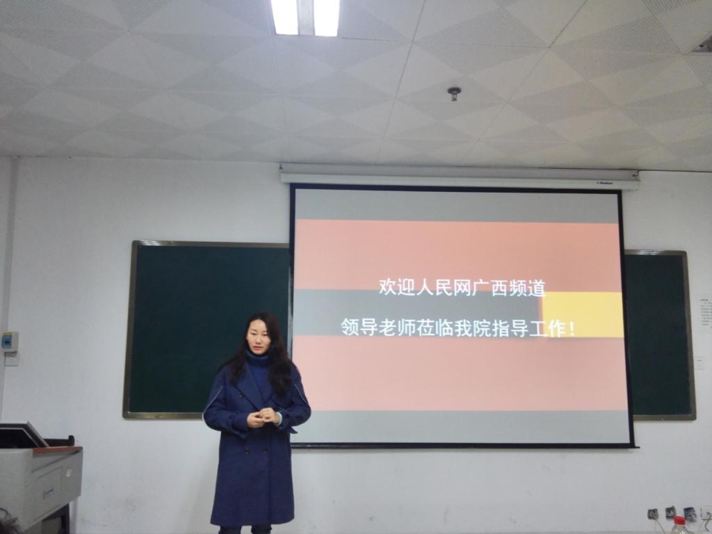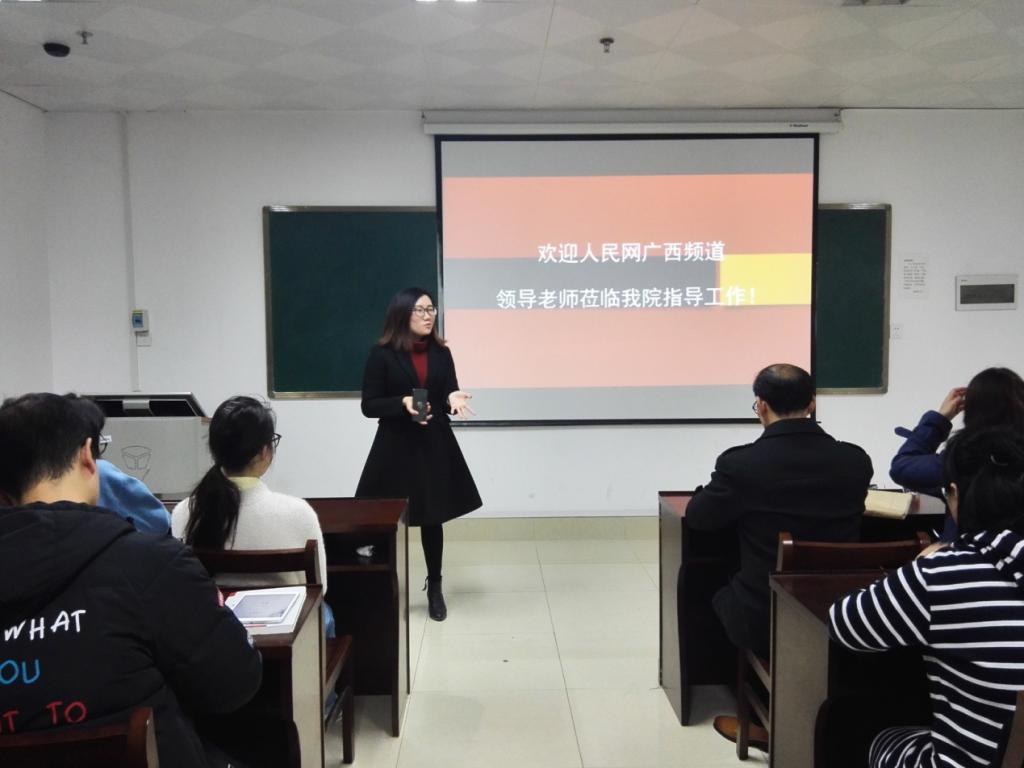 1月8日上午,人民网广西频道舆情项目负责人蒋平和总编办刘佳来beat365官方网站培训指导舆情监测工作。广西新媒体实验室舆情组的12名研究生成员参加了本次培训。公司团委书记雷圆媛主持会议。