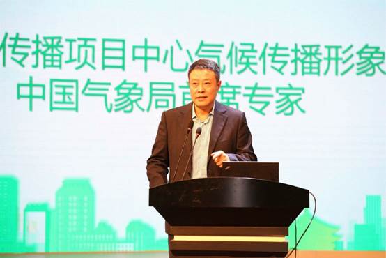 中国气候传播项目中心气候传播形象大使、中国气象局首席专家、中央电视台著名天气预报节目主持人宋英杰做大会演讲
