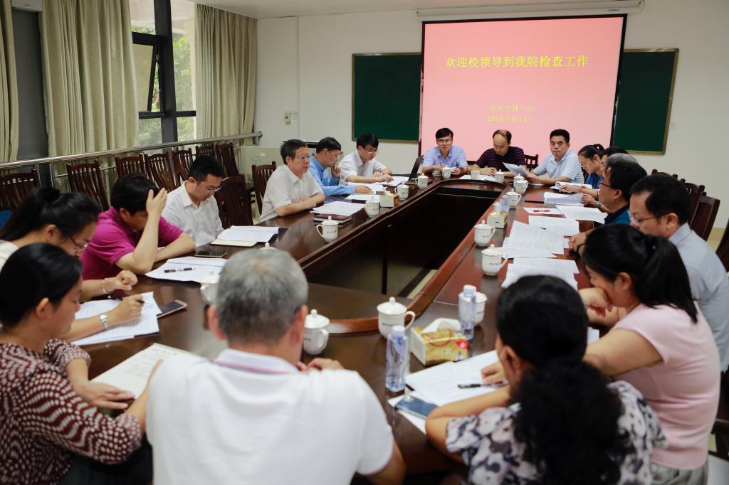 唐兴书记代表学院做了工作汇报:1、教师报到和上课情况,员工返校注册及上课情况;2、教学设备运行、教学环境的基本情况;3、新版本科专业培养计划的实行情况;4、学院发展规划目标(2018-2020)落实情况;5、工程类本科专业认证工作的推进情况;6、本科教学其它情况;7、学院“双一流”建设和“部区合建”工作推动情况;8、学院90周年校庆筹备工作进展情况。