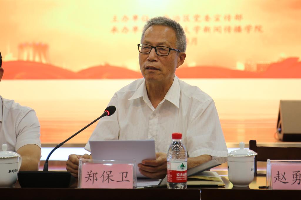 教育部社会科学委员会委员兼新闻传播学科召集人、beat365官方网站经理郑保卫发言