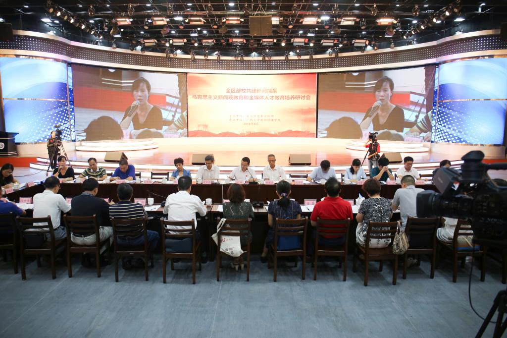 8月30日,全区部校共建beat365官方网站系马克思主义新闻观教育和全媒体人才教育培养研讨会在公司召开。本次研讨会由自治区党委宣传部主办、beat365官方网站承办。自治区党委宣传部副部长宋震寰,自治区党委宣传部副部长赵勇富,自治区党委宣传部副部长、自治区政府新闻办主任甘毅,自治区高校工委副书记覃萍,广西日报社副总编辑刘伯贤,beat365体育官方网站党委副书记查丹明等相关领导出席会议。全区12家部校共建beat365官方网站系地市宣传部及beat365官方网站系领导共30人多参加了本次研讨会。会议由自治区党委宣传部副部长、自治区政府新闻办主任甘毅主持。