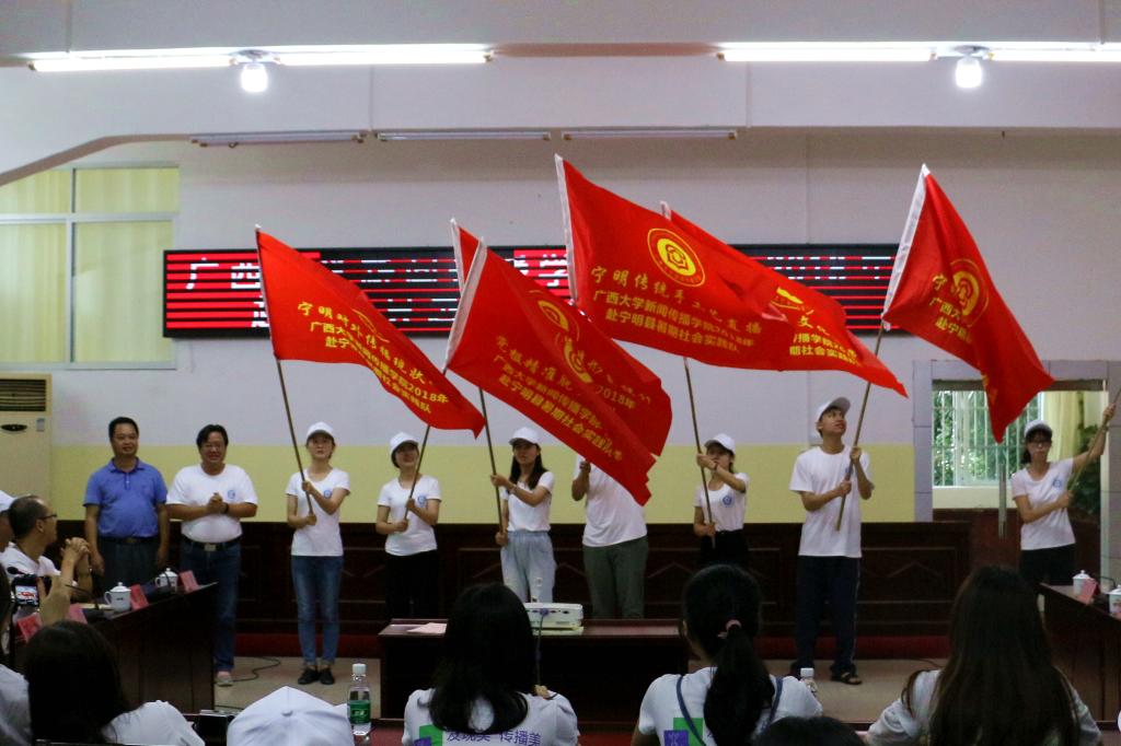 公司和宁明县委宣传部领导给社会实践的小组分别授旗
