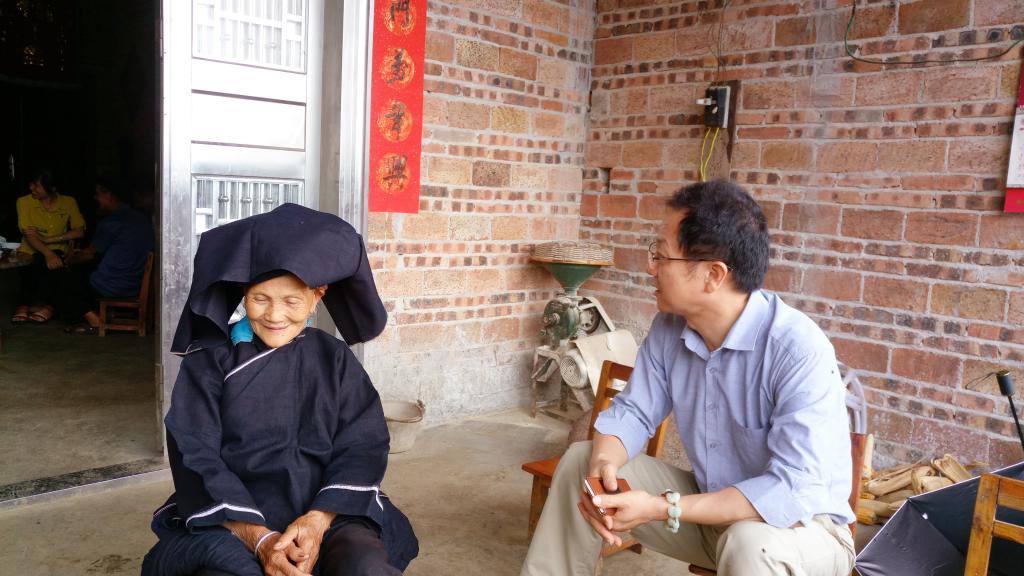 随后,调研团还对博物馆管理员梁进才进行了采访,采访中,79岁的梁进才表示,博物馆落成后,他自愿承担起管理博物馆的责任。但由于博物馆地处深山,参观人数十分稀少。他希望能够通过我们的调研使更多人到访黑衣壮博物馆,了解到那坡的黑衣壮文化。